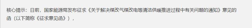 日前,國(guó)家能源局發(fā)布征求《關(guān)于解決“煤改氣”“煤改電”等清潔供暖推進(jìn)過(guò)程中有關(guān)問(wèn)題的通知》意見的函(以下簡(jiǎn)稱“《征求意見函》”),引發(fā)業(yè)內(nèi)熱議。